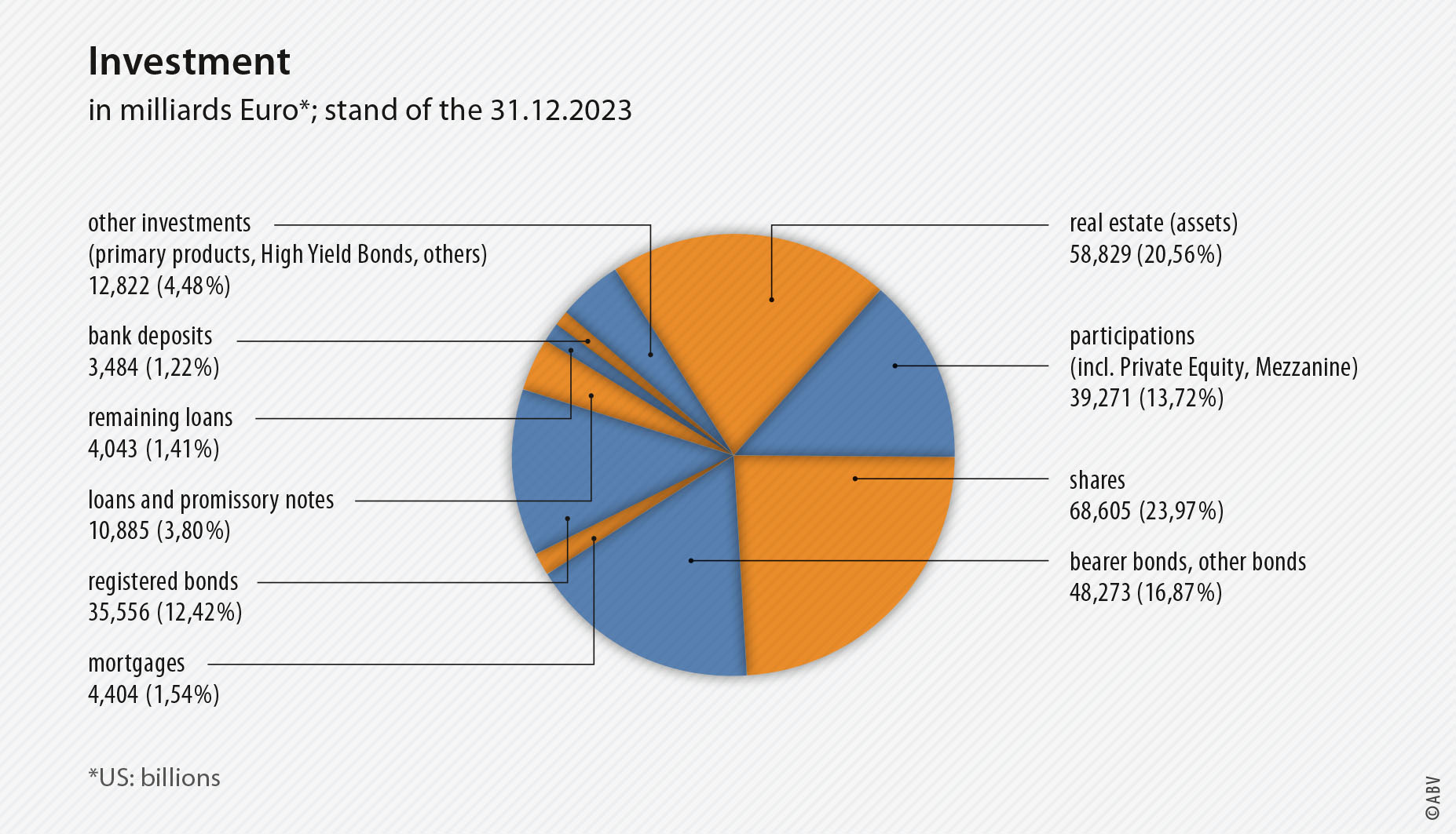 The professional pension schemes are submitted to the general supervision of the responsible minister of the federal state and to the specific acturial supervision by another minister, mostly the minister of economics. Since the returns on the invested capital play an important role for the efficiency of the pension schemes the authorities of the federal states usually have decided to applicate certain dispositions to control the investment which are the same as for the private insurance companies.