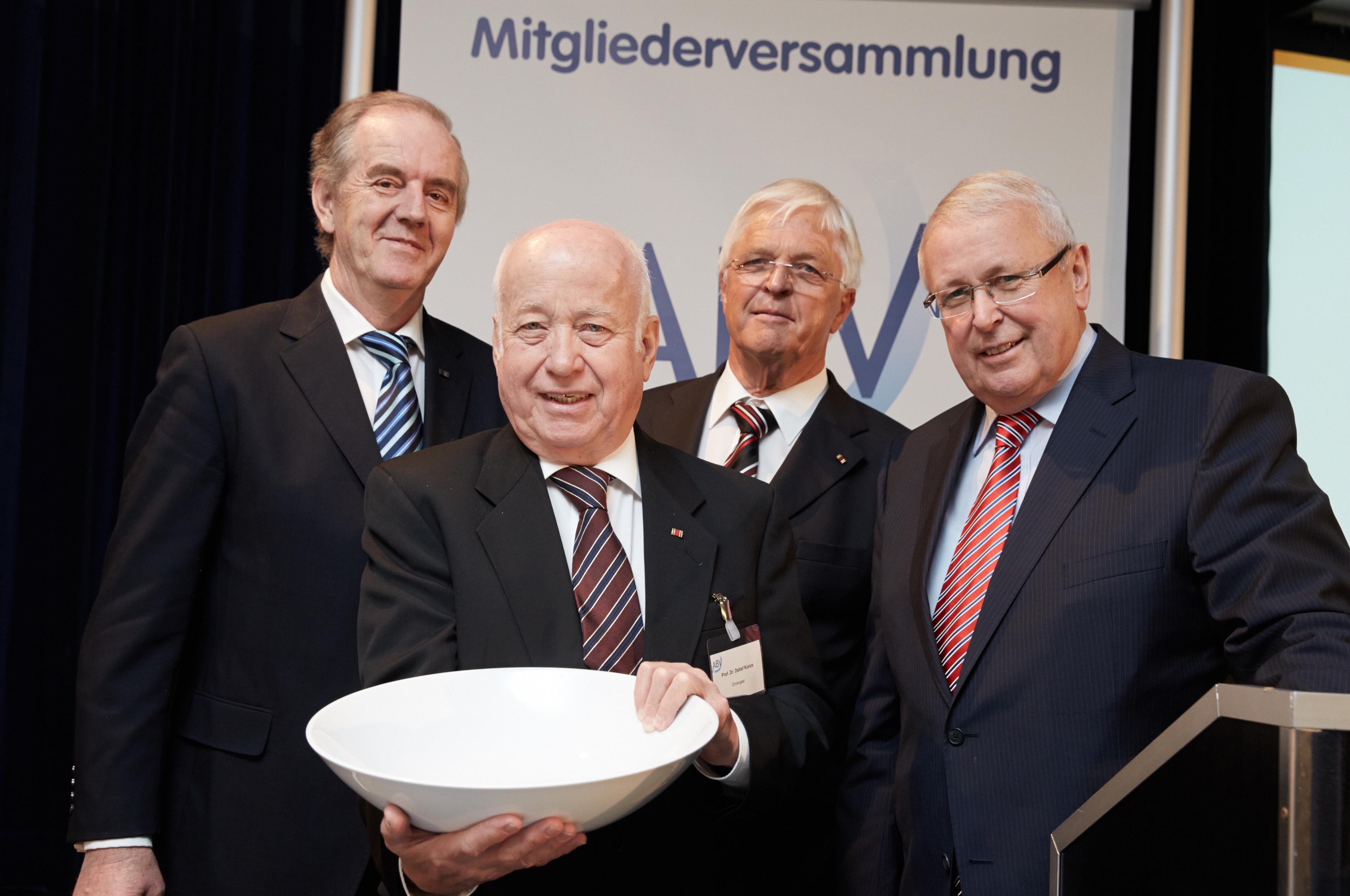 Die berufsständischen Versorgungswerke der Freien Berufe danken Herrn Dr. Richard Herrmann für sein Engagement in ihrer Sache und verleihen ihm die vom Vorstand der ABV aus Anlass des 20. Jahrestages der Wiederkehr der Gründung der ABV (1998) gestiftete Ehrenschale.